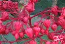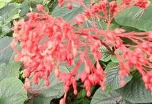 赪桐 Sweet)是唇形科、大青属灌木,高1-4米,叶片圆心形,顶端尖或渐尖,基部心形,边缘有疏短尖齿,表面疏生伏毛,二歧聚伞花序组成顶生,大而开展的圆锥花序,花序的最后侧枝呈总状花序,花萼红色,…全部>>