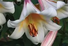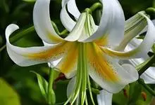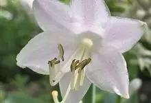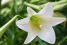 麝香百合:在中国台湾亦称铁炮百合。鳞茎球形或近球形,高2.5-5厘米;鳞片白色。茎高45-90厘米,绿色,基部为淡红色。叶散生,披针形或矩圆状披针形,两面无毛。花单生或2-3朵;花喇叭形,白色,筒外…全部>>