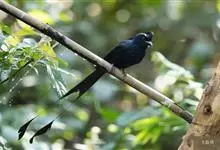 大盘尾:是雀形目卷尾科的鸟类,共有13个亚种。外形和小盘尾相似,但体型较大,体长约33厘米,加上延长的尾羽,可达66厘米。通体黑色,额部羽簇长而卷曲,形成直立向上的羽冠。尾叉状,…全部>>