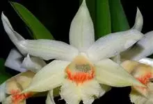 翅萼石斛是兰科石斛属的植物。茎肉质状粗厚,不分枝,干后为金黄色;叶革质,呈长圆形或舌状长圆形;总状花序出自近茎端,花苞片卵形,子房黄绿色,呈三棱形,花有橘子香气,萼囊淡黄色带橘红色,呈角状,花瓣为白色,…全部>>