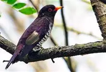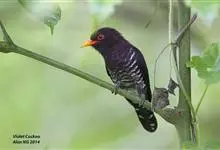 紫金鹃是一种羽色艳丽的小形杜鹃,体长约17厘米。雄鸟头、颈、胸和上体辉紫色,腹白色,具紫蓝色横斑;雌鸟上体淡铜绿色,下体白色,具淡褐色横斑。而相似种翠金鹃雄鸟上体和胸辉绿色,…全部>>