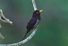 乌鹃:是杜鹃科、乌鹃属的小型鸟类,体长23-28厘米,通体黑色,尾呈浅叉状,尾下覆羽和外侧尾羽具白色横斑,在黑色的尾部极为醒目。下体黑色,微带蓝色或辉绿色。虹膜褐色或绯红色,嘴黑色,脚灰蓝色。…全部>>