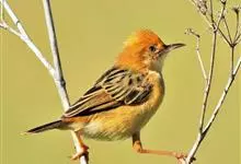 金头扇尾莺体小而具褐色纵纹的莺。嘴细长,略向下弯;翼短,体型娇小,尾长。下体皮黄,喉近白,尾深褐,尾端皮黄。雌雄羽色相近,羽色单调。繁殖期雄鸟顶冠亮金色,腰褐色。雌鸟及非繁殖期雄鸟头顶密布黑色细纹,…全部>>