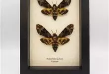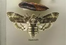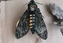 鬼脸天蛾,是鳞翅目天蛾科面形天蛾属动物。成虫翅展100~125毫米,体黑褐色;胸背有骷髅形斑纹;卵圆球形,直径约2毫米,淡黄绿色,表面光滑;老熟幼虫体长70~90毫米,蛹体长约56毫米;前翅为褐色,…全部>>