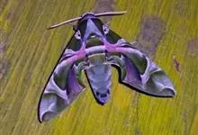 夹竹桃天蛾是鳞翅目天蛾科昆虫。又称夹竹桃白腰天蛾、巴纹天蛾。成虫呈青黑色,四翅正反面都以橄榄色为主调,而前翅中部则略显粉紫色;前翅基部灰白色,中央有1个黑点,…全部>>