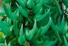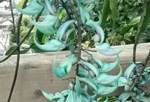 翡翠葛是豆科翡翠葛属植物,多年生常绿大型藤本,茎木质,直径可达30厘米,长可达21.3米。三出复叶,革质光亮,小叶长椭圆形,长7.6-12.7厘米,中间小叶最长。花两性,春季至初夏开花,蓝绿色,…全部>>