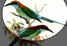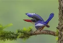 鹳嘴翡翠:体长33-37厘米。体重140-200克。共有13个亚种,体型大,嘴形巨大、侧扁,似鹳嘴,红色,嘴峰两侧有鼻沟。头灰褐色,上体蓝色,下体和宽阔的领环赭土色,脚红色。飞翔时翅上无斑。全部>>