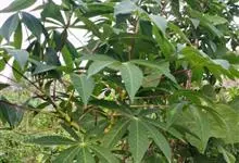 木薯,为大戟科木薯属的一种直立灌木,又名木番薯、树薯。木薯高1.5-3米;块根圆柱状。叶纸质,轮廓近圆形;裂片倒披针形至狭椭圆形;托叶三角状披针形。圆锥花序顶生或腋生,花萼带紫红色且有白粉霜。…全部>>