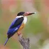 蓝翡翠是佛法僧目翠鸟科翡翠属鸟类。嘴粗长似凿,基部较宽,嘴峰直;翼圆。体色以蓝色、白色及黑色为主;额、头顶、头侧和枕部黑色;后颈白色,向两侧延伸与喉胸部白色相连,…全部>>