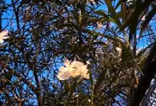 夹竹桃,又名红花夹竹桃、欧洲夹竹桃,是夹竹桃科夹竹桃属的一种常绿直立大灌木,枝条灰绿色,含水液。叶披针形,3叶轮生。聚伞花序顶生,花冠粉红至深红色,花冠漏斗状,有特殊香味。蓇葖果,圆柱形。种子长圆形,…全部>>