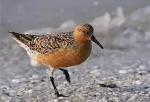 红腹滨鹬,是鹬科、滨鹬属的小型涉禽,体长23-25厘米,嘴较短而直、黑色,脚亦甚短、绿色。体较粗胖。夏季上体灰褐色具黑色中央纹,背具棕栗色和白色斑纹和羽缘,头侧和整个下体栗红色。冬季棕红色消失,…全部>>