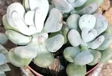 星美人是景天科、厚叶莲属多年生多浆肉质草本植物。植株具直立的短茎。叶12-20片互生,排列呈延长的莲座状,肉质,倒卵形,长2-4厘米,宽2-2.5厘米,厚2厘米,先端平滑钝圆,…全部>>