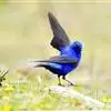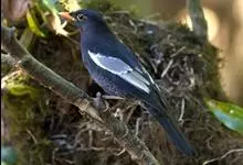 蓝大翅鸲是鹟科、大翅鸲属小型鸟类,体长19-21厘米。两翅尖长。雄鸟通体鲜紫蓝色具金属光泽。两翅和尾黑色。雌鸟上体灰褐色,头、颈、翕具棕白色纵纹,翅上有白色翅斑。虹膜暗褐色,嘴、脚黑色。…全部>>
