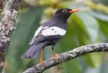 灰翅鸫是鸫科、鸫属中型鸟类。体长26-29厘米。雄鸟通体黑色,翅上具大而明显的淡灰色翼斑,在黑色体羽的衬托下极为醒目。腹至尾下覆羽具银灰色羽缘,形成明显的银灰色鳞状斑。嘴橙黄色,眼周黄色。…全部>>