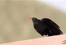 红嘴山鸦,是脊索动物门鸟纲雀形目鸦科鸟类。红嘴山鸦的成鸟通体羽毛纯黑色具有蓝色金属光泽,翼和尾泛有蓝绿色金属光泽;虹膜暗褐色,喙较为尖细,并且呈镰状下弯,喙和脚朱红色。…全部>>