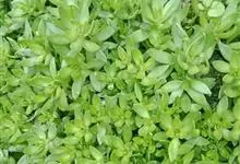 垂盆草别名石头菜、狗牙瓣、豆瓣菜等,为景天科景天属的多年生草本植物。不育枝及花茎细,匍匐而节上生根,直到花序之下;3叶轮生,叶倒披针形至长圆形,先端近急尖,基部急狭,有距;聚伞花序,花无梗,…全部>>