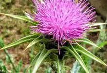 水飞蓟 Gaertn.),又名水飞雉、奶蓟、老鼠筋、乳蓟子,是菊科水飞蓟属的一种一年生或二年生草本植物。株高1.2m。茎直立有棱,多分枝,光滑或被蛛丝状毛。叶互生,莲座状基生叶常平铺地面,…全部>>