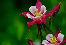 耧斗菜,毛茛科耧斗菜属多年生草本。根肥大,圆柱形;基生叶少数,二回三出复叶;叶片楔状倒卵形;叶柄疏被柔毛或无毛;花瓣瓣片与萼片同色,直立,倒卵形;雄蕊花药长椭圆形,黄色;退化雄蕊白膜质,…全部>>