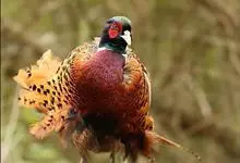 环颈雉是雉科、雉属的一种走禽,共有30个亚种。体重900-1050克,体长53-89厘米。体型较家鸡略小,但尾巴却长得多。雄鸟和雌鸟羽色不同,雄鸟羽色华丽,多具金属反光,…全部>>