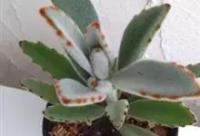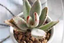 褐斑伽蓝是景天科伽蓝菜属的多年生多肉类植物,茎直立,多分枝,叶生于枝上,肉质叶片匙形,上面密被白色绒毛,下部全缘,叶缘上部有缺刻,缺刻处有深褐或棕色斑块。褐斑伽蓝原产非洲的马达加斯加岛。…全部>>