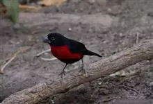 黑胸歌鸲是鹟科、歌鸲属小型鸟类,体长13-16厘米。上体石板灰褐色或橄榄褐色,头和颈侧黑色,眉纹和颧纹白色,在暗色的头部极为醒目。两翅和尾黑褐色,外侧尾羽具白色端斑。下体颏、喉雄鸟深红色,雌鸟白色。…全部>>