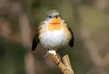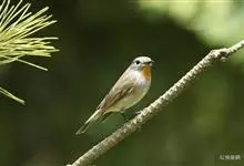 橙胸姬鹟:体长12-16厘米,是一种体型略小的林栖型鹟。尾黑而基部白,上体橄榄褐色,额具一白色横带,两端向上延伸至眼上形成眉斑。翼橄榄色,下体灰。成年雄鸟额上有狭窄白色并具小的深红色项纹,常不明显。…全部>>