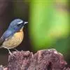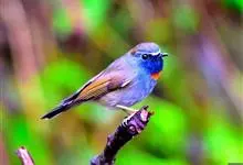 棕胸蓝姬鹟:属小型鸣禽,体长10-13厘米,体重6-10克,是一种体型很小的灰蓝及棕色鹟,雌雄羽色不同,雄鸟羽色艳丽,雌鸟羽色暗淡。雄鸟上体深蓝色,胸橙黄色,下腹灰白色。亚成鸟具褐色斑驳。…全部>>