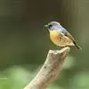 棕胸蓝姬鹟:属小型鸣禽,体长10-13厘米,体重6-10克,是一种体型很小的灰蓝及棕色鹟,雌雄羽色不同,雄鸟羽色艳丽,雌鸟羽色暗淡。雄鸟上体深蓝色,胸橙黄色,下腹灰白色。亚成鸟具褐色斑驳。…全部>>