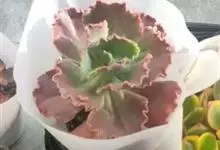 女王花笠,又名扇贝石莲花、女王花舞笠,是景天科拟石莲花属的多肉植物。由美国加利福尼亚州的育种师Dick Wright于1964年培育。特征是呈大波浪状褶皱的红色叶缘和气质高贵的粉紫色调。…全部>>