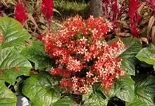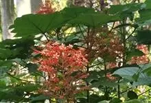 赪桐 Sweet)是唇形科、大青属灌木,高1-4米,叶片圆心形,顶端尖或渐尖,基部心形,边缘有疏短尖齿,表面疏生伏毛,二歧聚伞花序组成顶生,大而开展的圆锥花序,花序的最后侧枝呈总状花序,花萼红色,…全部>>