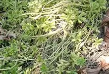 垂盆草别名石头菜、狗牙瓣、豆瓣菜等,为景天科景天属的多年生草本植物。不育枝及花茎细,匍匐而节上生根,直到花序之下;3叶轮生,叶倒披针形至长圆形,先端近急尖,基部急狭,有距;聚伞花序,花无梗,…全部>>