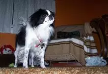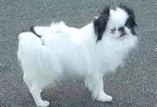 日本狆是极小型犬;被毛长而丰厚,不弯曲;毛色为白色底,带黑色或栗色斑块,斑块颜色越艳越好;斑块以在耳、身、面、尾根左右对称者为佳;头较大而圆,头骨平坦;吻短,鼻尖缩至两眼之间,几乎与眼同齐;眼大而凸出,…全部>>