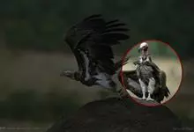 肉垂秃鹫,Torgos tracheliotos ,鹰科肉垂秃鹫属的一个物种。是生活在非洲荒漠草原上的一种数量非常多的大型大陆鹫,它体长约1米,展翼可达2.7米,它因裸露的头部两侧悬垂着粉色肉垂而得…全部>>