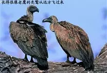 白兀鹫:是鹰科、白兀鹫属的唯一鸟类。也叫法老之鸡,在南亚这一物种被称为清道夫秃鹰。体长58-70厘米,翼展155-170厘米,体重1.6-2.2千克。成鸟大多是白色到浅灰色的羽毛,…全部>>
