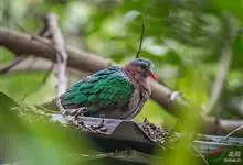 绿背金鸠体长约25厘米,是中等体型、尾甚短的地栖型斑鸠。下体粉红,头顶灰色,额白,腰灰,两翼具亮绿色。雌鸟头顶无灰色。飞行时背部两道黑色和白色的横纹清晰可见。主要栖息于2000米以下的山地森林中,…全部>>