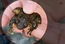 中华虎头蟹是十足目馒头蟹科虎头蟹属节肢动物。头胸甲呈长卵圆形,长大于宽;背面隆起,密布粗颗粒,但后部颗粒较细,分区明显;额具3枚锐齿,中齿大而突起,眼窝大、深凹,上眼窝缘有两个钝齿和颗粒,外眼窝齿较大,…全部>>