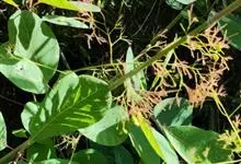 粉背黄栌叶卵圆形,较大,长3.5-10厘米,宽2.5-7.5厘米,无毛,但叶背显著被白粉;叶柄较长,1.5-3.3厘米,…全部>>