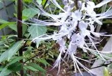 肾茶 Miq.)是唇形科,肾茶属多年生草本植物。别名猫须草。茎直立,高可达1.5米,四稜形,叶片卵形、菱状卵形或卵状长圆形,纸质,上面榄绿色,下面灰绿色,叶柄腹平背凸,被短柔毛。轮伞花序;苞片圆卵形,…全部>>