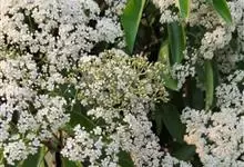 石楠 Kalkman),是蔷薇科石楠属的常绿乔木,高5~12米,株型紧凑,树冠圆球形。树枝为褐灰色;鳞片为褐色,没有毛;叶片革质,长椭圆至侧卵状椭圆形,有锯齿,新叶红色光亮。复伞房花序,白色小花,…全部>>