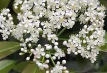石楠 Kalkman),是蔷薇科石楠属的常绿乔木,高5~12米,株型紧凑,树冠圆球形。树枝为褐灰色;鳞片为褐色,没有毛;叶片革质,长椭圆至侧卵状椭圆形,有锯齿,新叶红色光亮。复伞房花序,白色小花,…全部>>