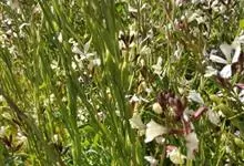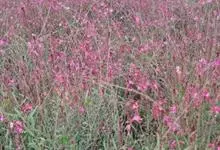 山桃草是柳叶菜科、山桃草属植物。多年生宿根草本。高60-100厘米,叶无柄,椭圆状披针形或倒披针形,花期晚春至初秋;多花型,花蕾白色略带粉红,初花白色,谢花时浅粉红。花紫红色,成密生的穗状花序,…全部>>