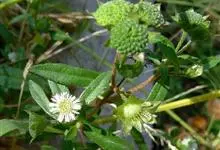 鳢肠 L.)是菊科,鳢肠属一年生草本植物。茎直立,高可达60厘米,叶片长圆状披针形或披针形,无柄或有极短的柄,两面被密硬糙毛。头状花序,有细花序梗;总苞球状钟形,总苞片绿色,草质,长圆形或长圆状披针形,…全部>>