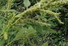 反枝苋是苋科苋属的一年生草本植物。株高达1米;茎密被柔毛;叶菱状卵形或椭圆状卵形,先端锐尖或尖凹,两面及边缘被柔毛,下面毛较密;穗状圆锥花序,顶生花穗较侧生者长;花被片长圆形或长圆状倒卵形,…全部>>