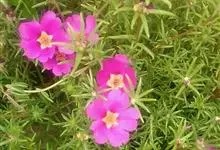 大花马齿苋:一年生草本,高10-30厘米。茎平卧或斜升,紫红色,多分枝,节上丛生毛。叶密集枝端,较下的叶不规则互生,叶片细圆柱形,无毛。花单生或数朵簇生枝端,直径2.5-4厘米,…全部>>