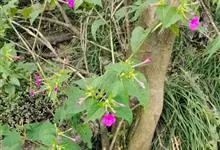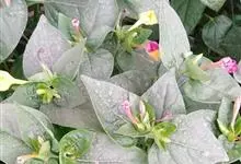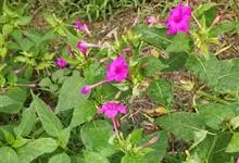 即紫茉莉,英文名:Four-o'clock,Marvel of Peru,为紫茉莉科、紫茉莉属多年生草本植物,一年生栽培。株高50~80cm。根粗壮,茎多分枝而散生。叶对生,卵形或心脏形。花数朵簇生…全部>>