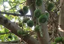 大果榕是桑科榕属的小乔木,株高可达10米;幼枝被柔毛;叶互生,宽卵状心形或近圆形;雄花无梗、匙形、花丝长,雌花生于雌株榕果内,子房白色;榕果簇生于树干基部或老茎短枝上、扁球形或陀螺形,…全部>>