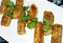 腐皮卷素菜是一道广东省的传统名菜,属于粤菜系。把香菇用清水浸软,去蒂,切细丝,胡萝卜,榨菜分别洗净,切细丝,豆芽,韭黄分别洗净,韭黄切段。用2汤匙油爆香姜丝,胡萝卜,榨菜,放入香菇同炒透,将豆芽放入…全部>>