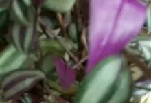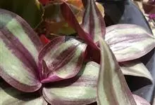 吊竹梅是鸭跖草科紫露草属的多年生草本植物;茎半肉质,柔弱披散至悬垂;叶椭圆形至长圆形,无柄,先端急尖至渐尖,基部鞘状抱茎,叶面紫绿色而杂有银白色,叶背紫色,全缘;花聚生于顶生叶状苞内,…全部>>