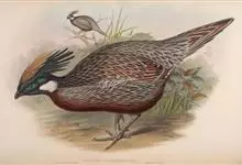 血雉雉科血雉属鸟类,别名血鸡、松花鸡,血雉的雄鸟大覆羽、尾下覆羽、尾上覆羽、脚、头侧、腊膜为红色,故称血雉。其别名甚多,各地皆异。在甘肃,因其胸侧和翅上覆羽沾绿,被称为“绿鸡”;因其羽毛形似柳叶,…全部>>