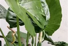 海芋 K. Koch),是天南星科海芋属的大型常绿草本植物;具匍匐根茎,有直立地上茎,基部生不定芽条;叶多数,亚革质,草绿色,箭状卵形,叶柄绿或污紫色,螺旋状排列,粗厚;花序梗圆柱形,绿色,有时污紫色,…全部>>